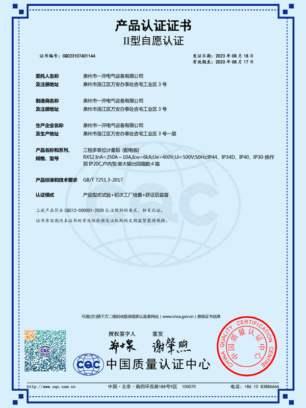 產品認證證書